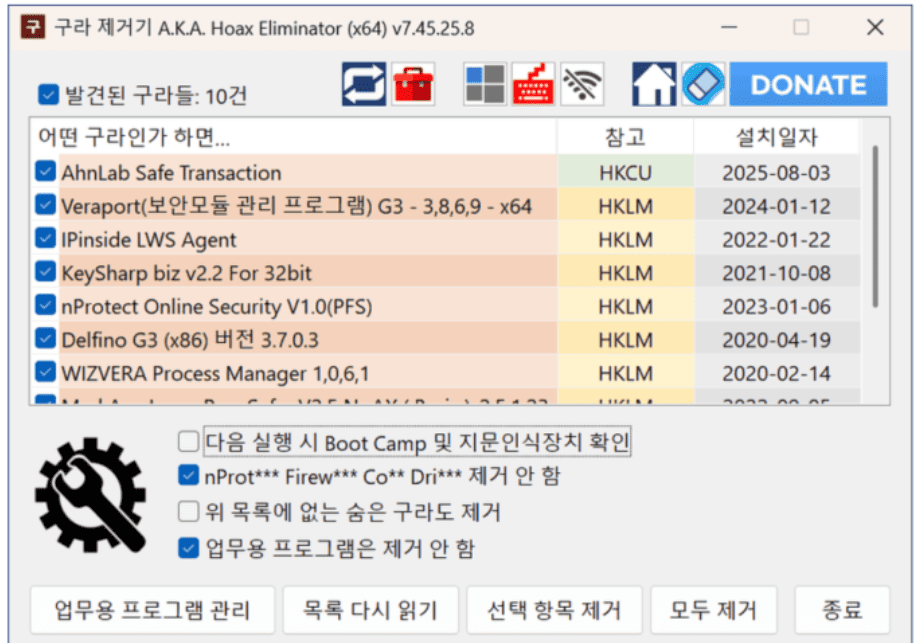‘구라제거기’는 불필요한 보안 프로그램들을 한 번에 찾아서 삭제해 주는 무료 프로그램이에요. 개발자 블로그에서 다운로드받고, 압축 해제 후(비밀번호: teus.me), 32비트/64비트 중 ...